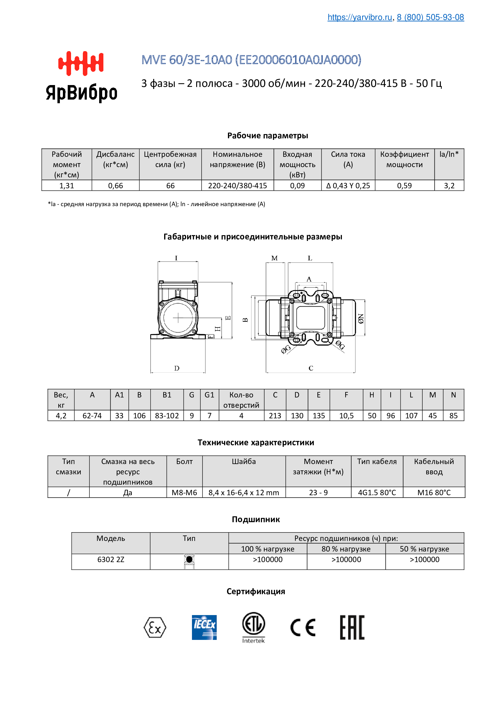 Технические характеристики вибратора OLI MVE 60/3